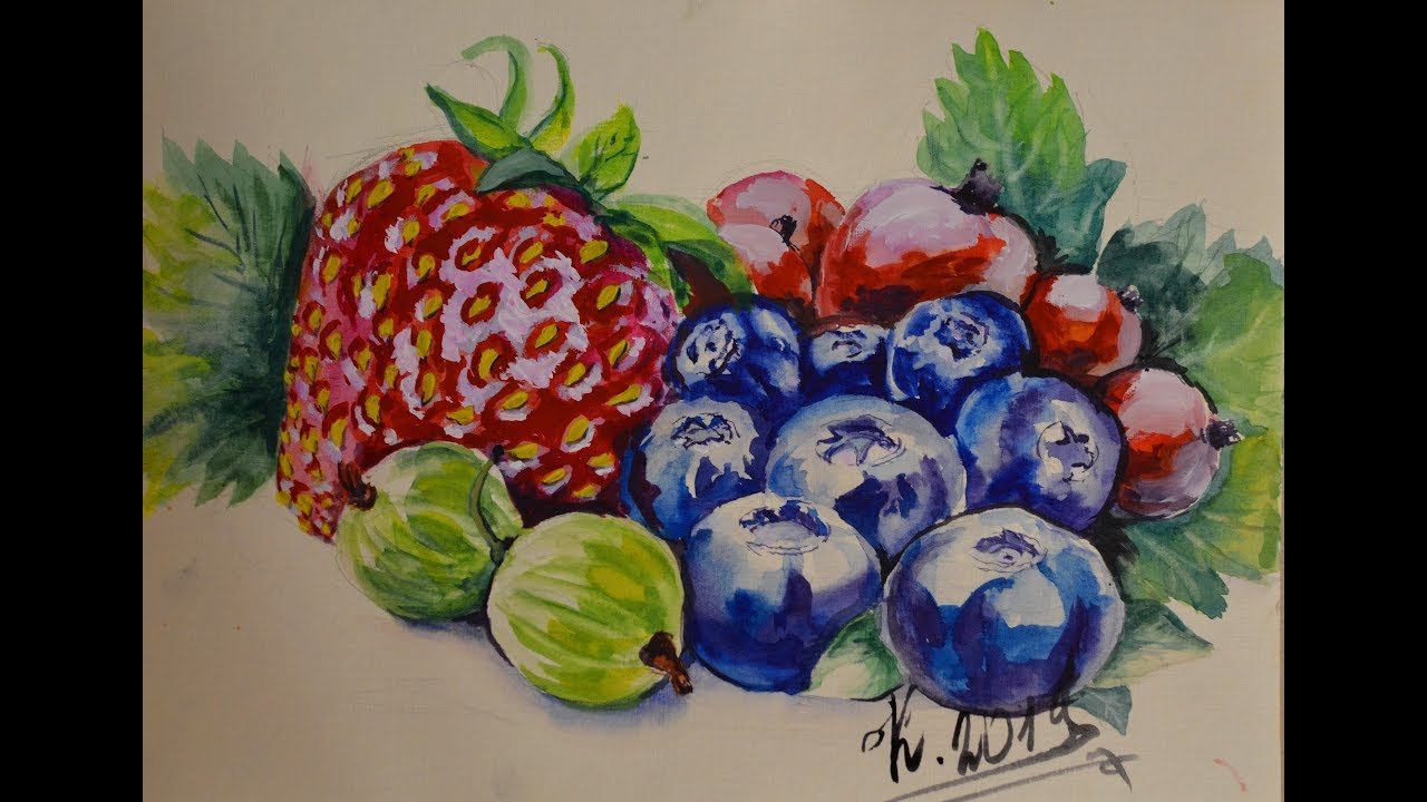 Рисунки гуашью фрукты ягоды