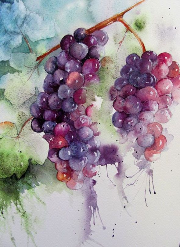 Виноград акварелью