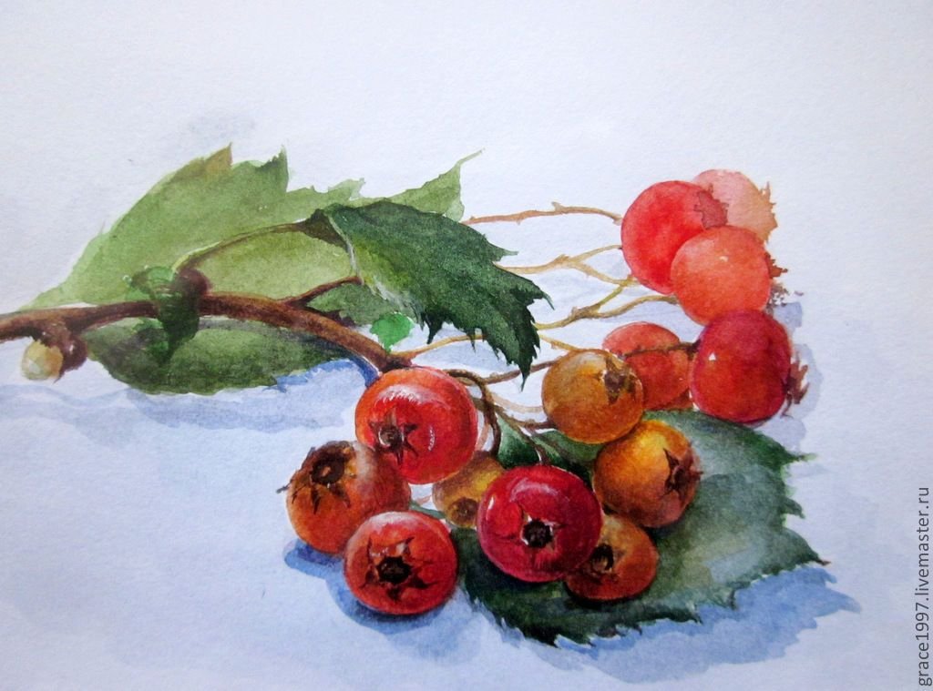 ![Рябина акварель Мария Стежко]()