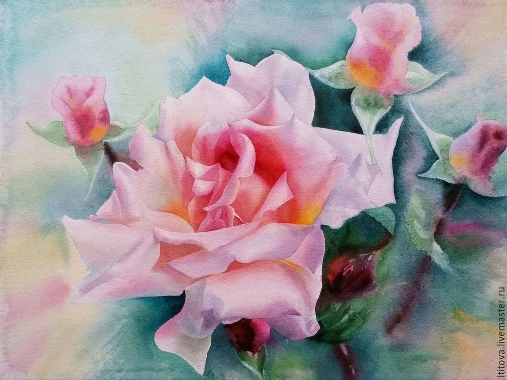![Художник Chihiro Yabe. Акварельные розы.]()