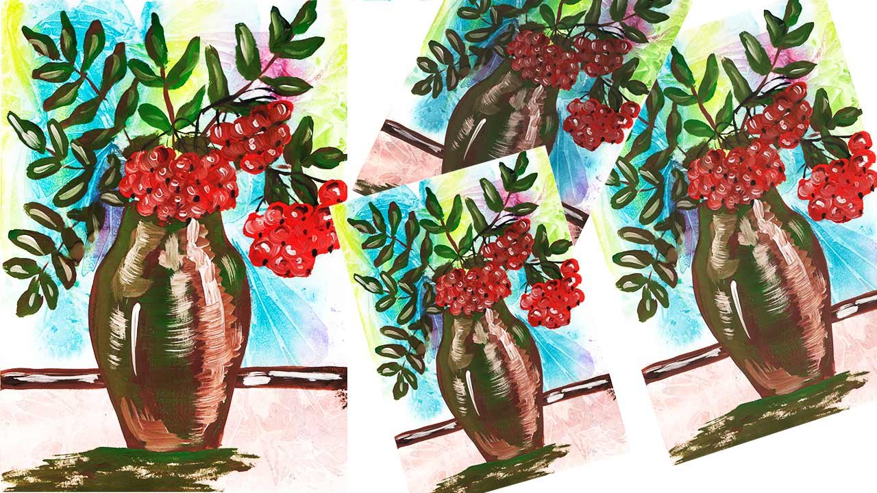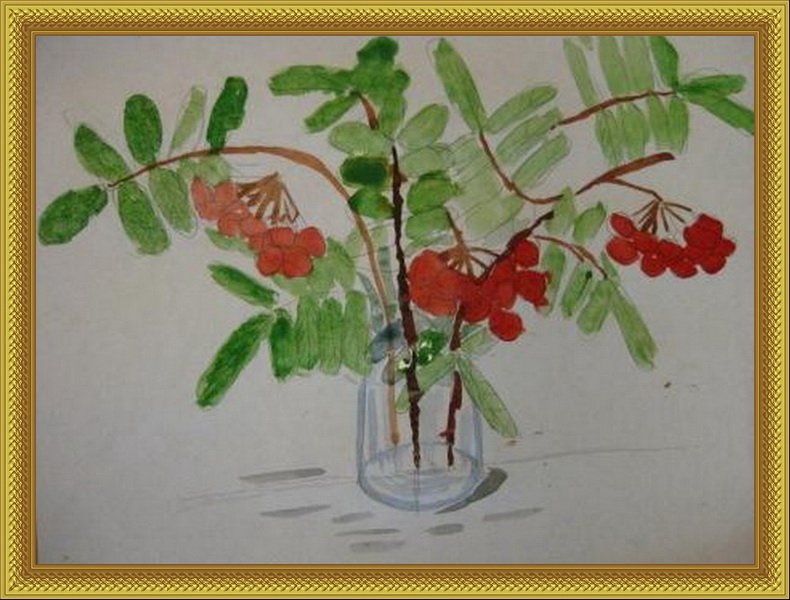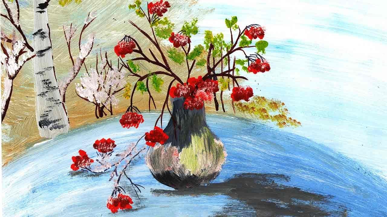 Рисование ветка рябины в вазе