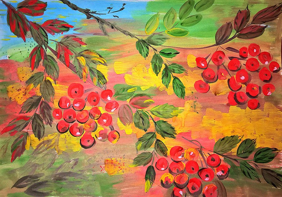 ![Рябина гуашью]()