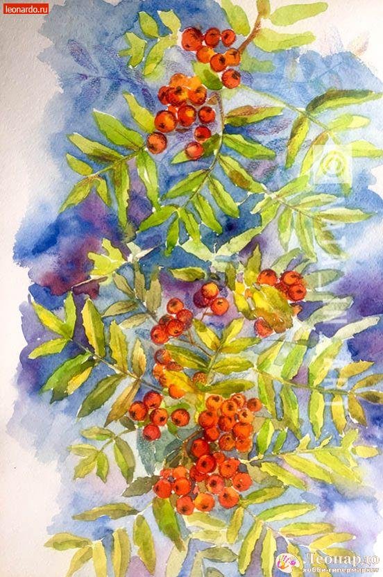 ![Натюрморт с рябиной живопись акварелью]()