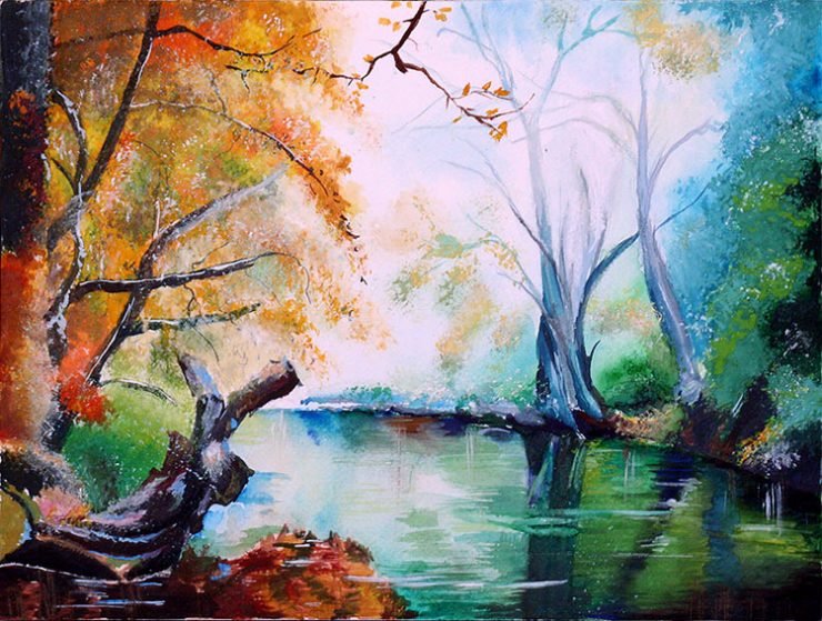 Живописный пейзаж гуашью