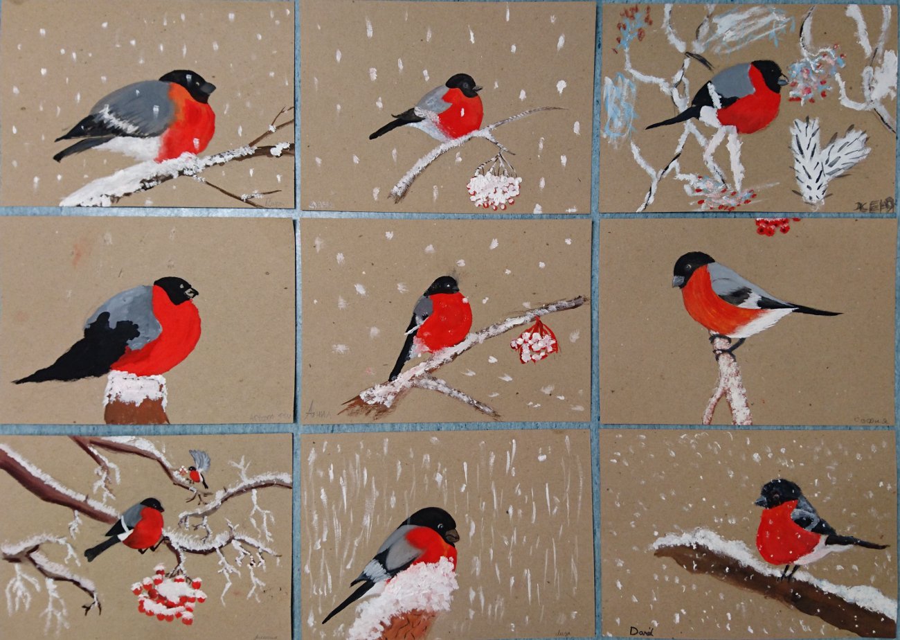 Урок рисования Снегирь