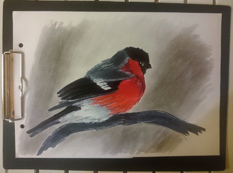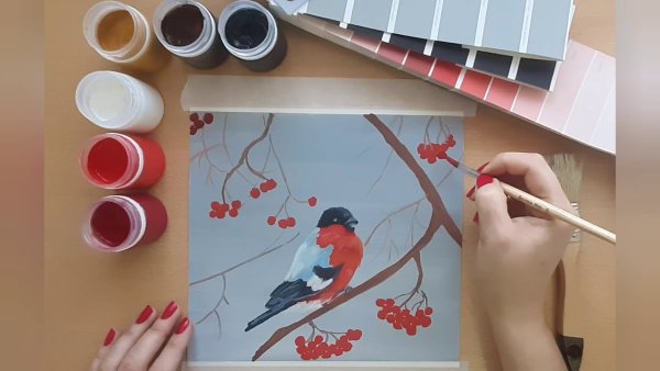![Снегирь гуашью]()