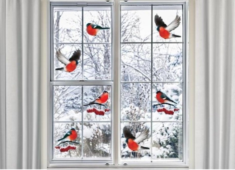 ![Снегири на окна к новому году]()