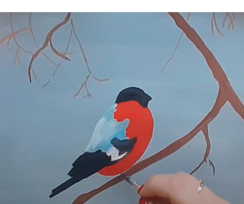Поэтапное рисование снегиря гуашью