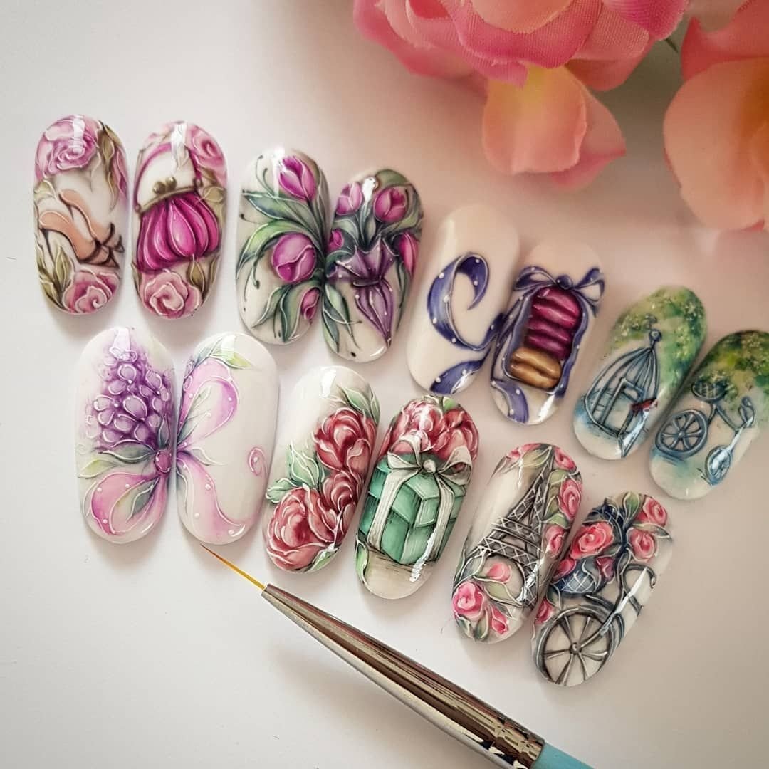 Рисунки гуашью на ногтях — это уникальный способ украшения и придания индивидуальности своим ногтям. Гуашь, известная своей насыщенной палитрой и возможностью создавать множество разнообразных оттенков, используется здесь как основа для творчества. С помощью кисточки и аккуратных движений можно создать удивительные мотивы и орнаменты на ногтевой пластине. Эта техника предлагает безграничные возможности для самовыражения и экспериментирования с цветами и формами. Будь то абстрактные узоры, цветочные композиции или миниатюрные пейзажи, рисунки гуашью на ногтях станут настоящим произведением искусства на ваших руках. Позвольте своей фантазии полететь и создайте уникальный дизайн для своих ногтей с помощью гуаши!