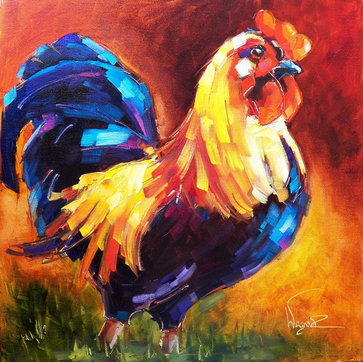 ![Петух картина маслом на холсте]()