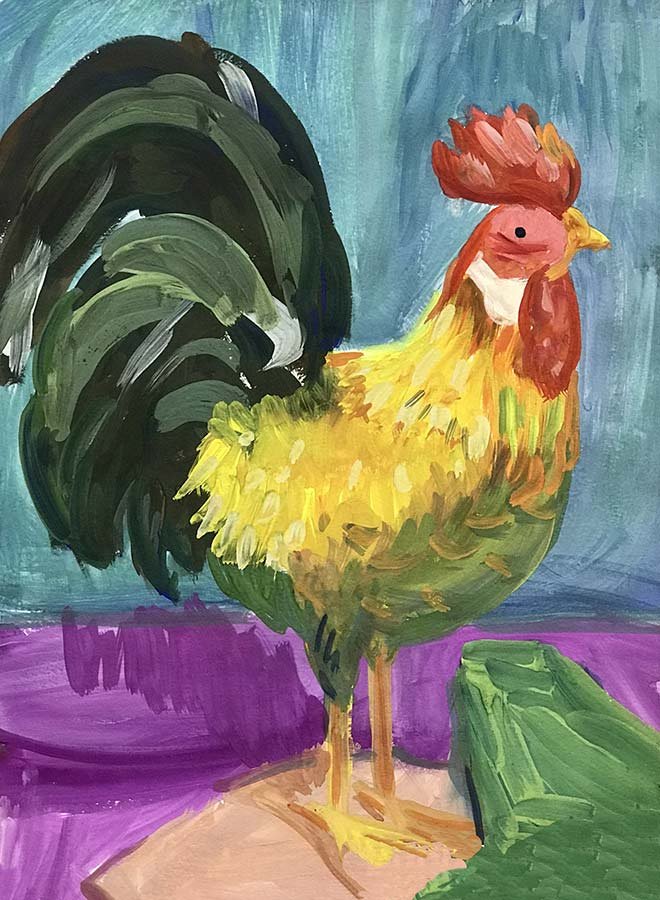 Петух гуашью