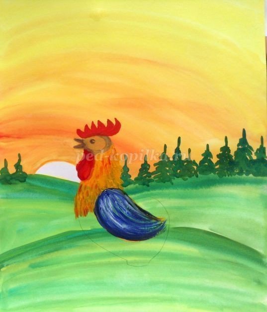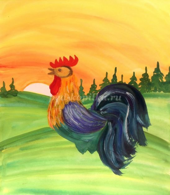 ![Петух рисунок гуашью]()