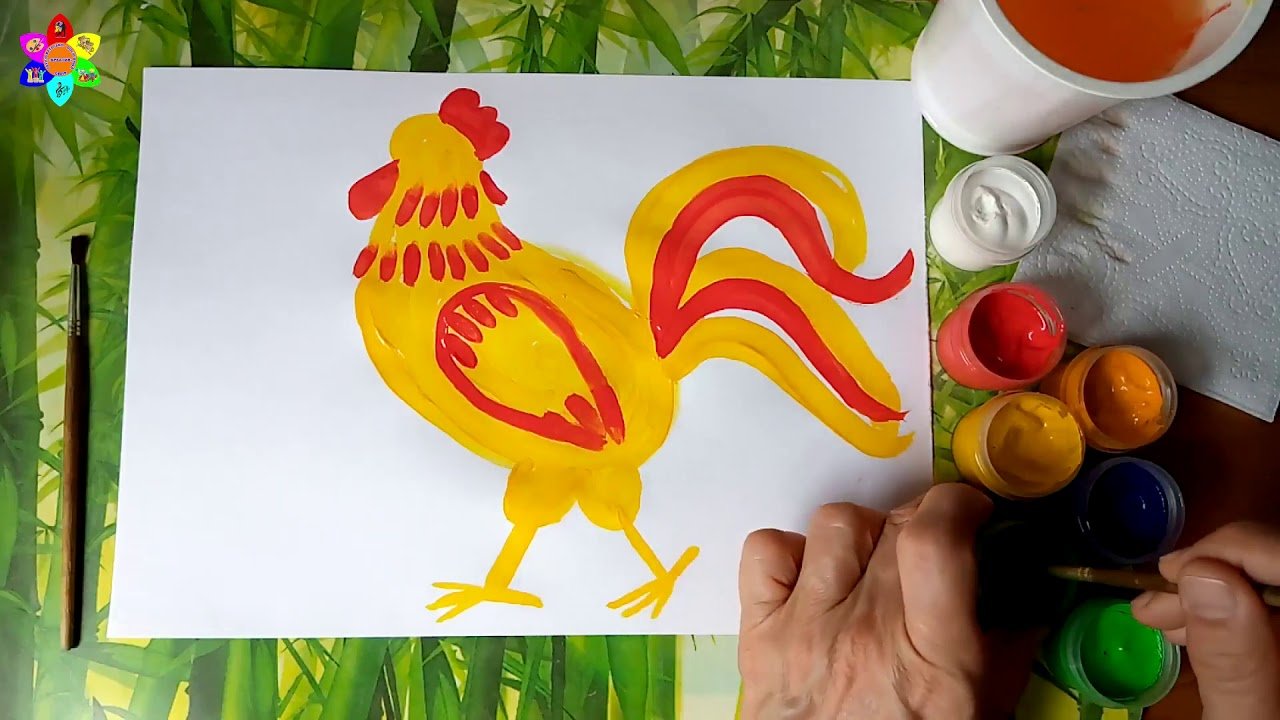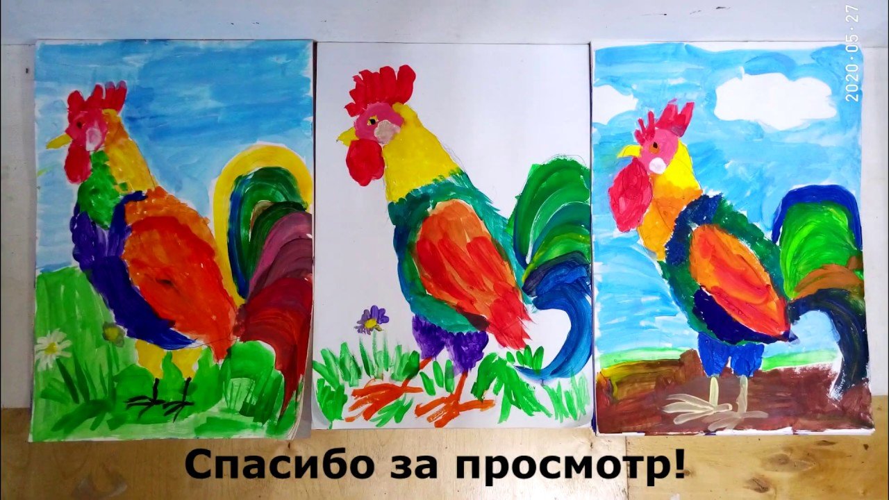 Петух гуашь с детьми