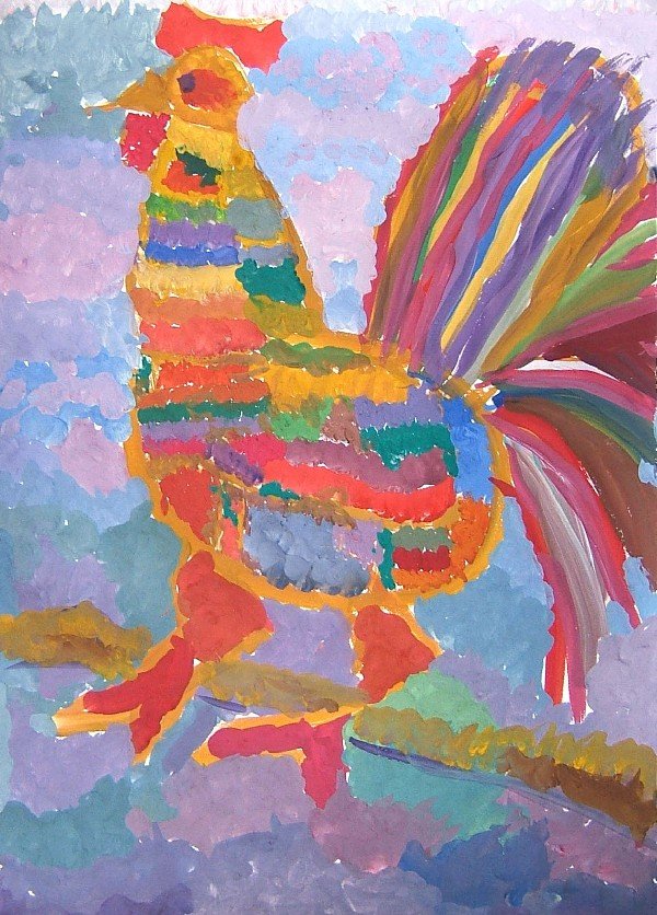 ![Петух гуашью]()