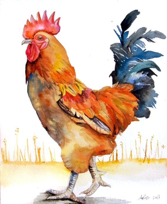 ![Петушок акварелью]()
