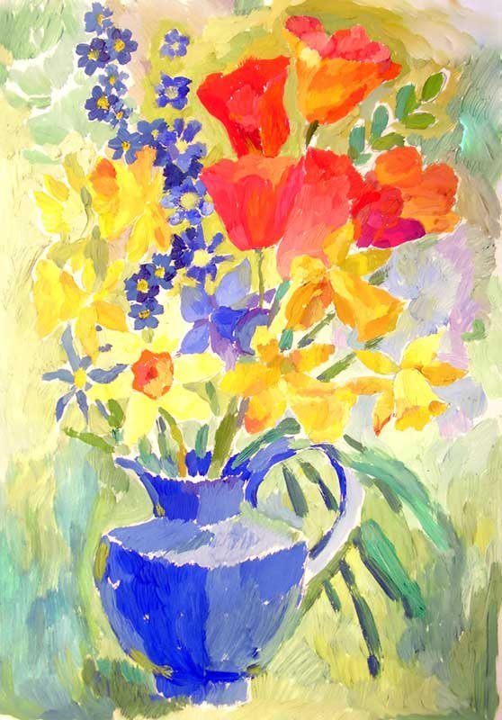 ![Весенние цветы красками]()
