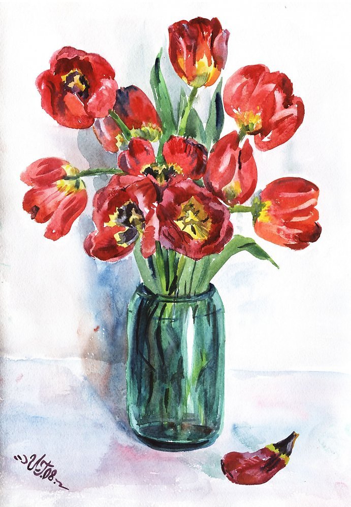Тюльпаны акварелью