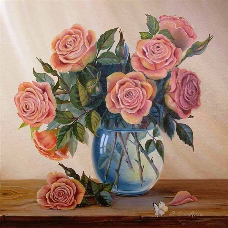 ![Цветы в вазе живопись]()