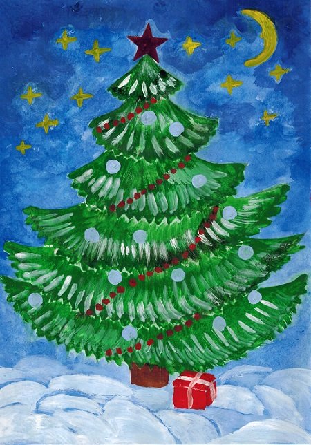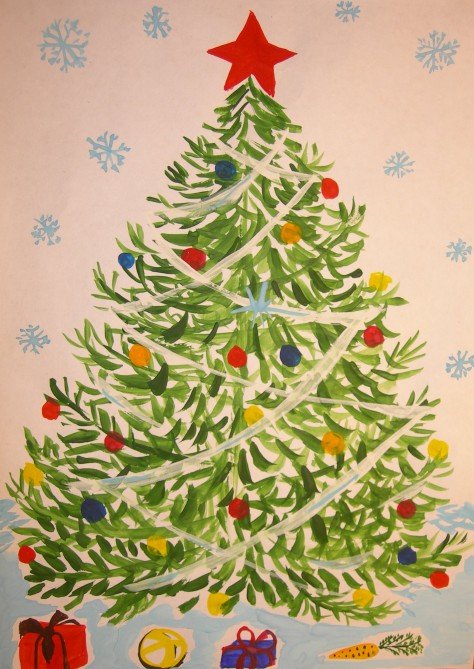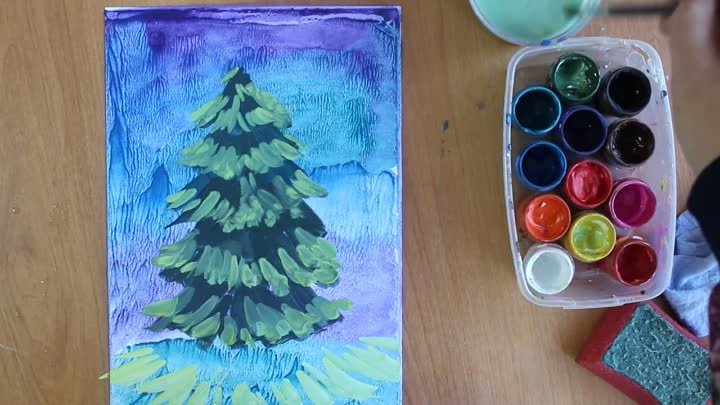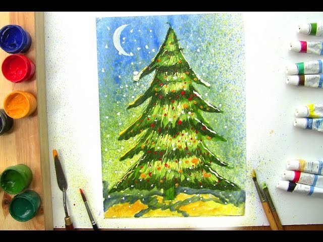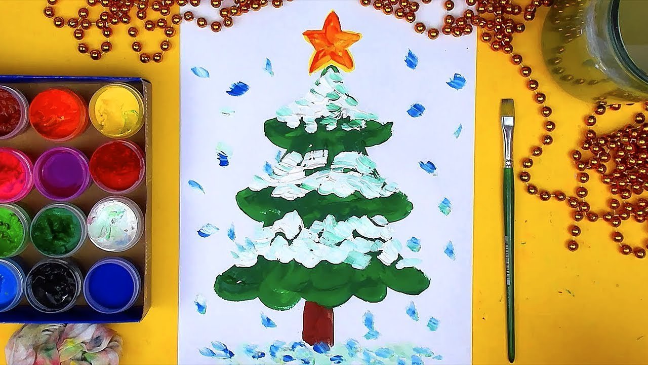 ![Рисование с детьми Новогодняя ёлка гуашью]()
