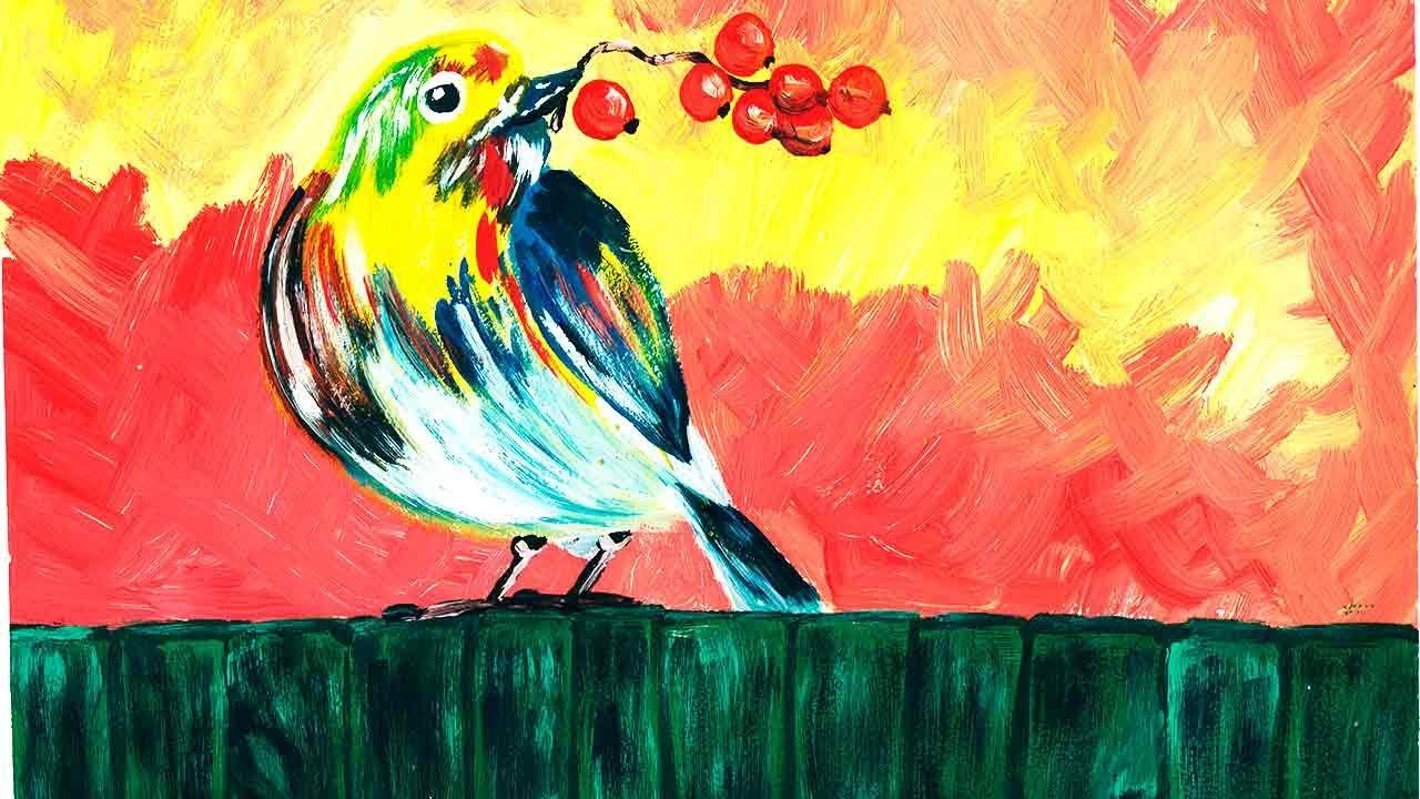 ![Живопись птички гуашь]()