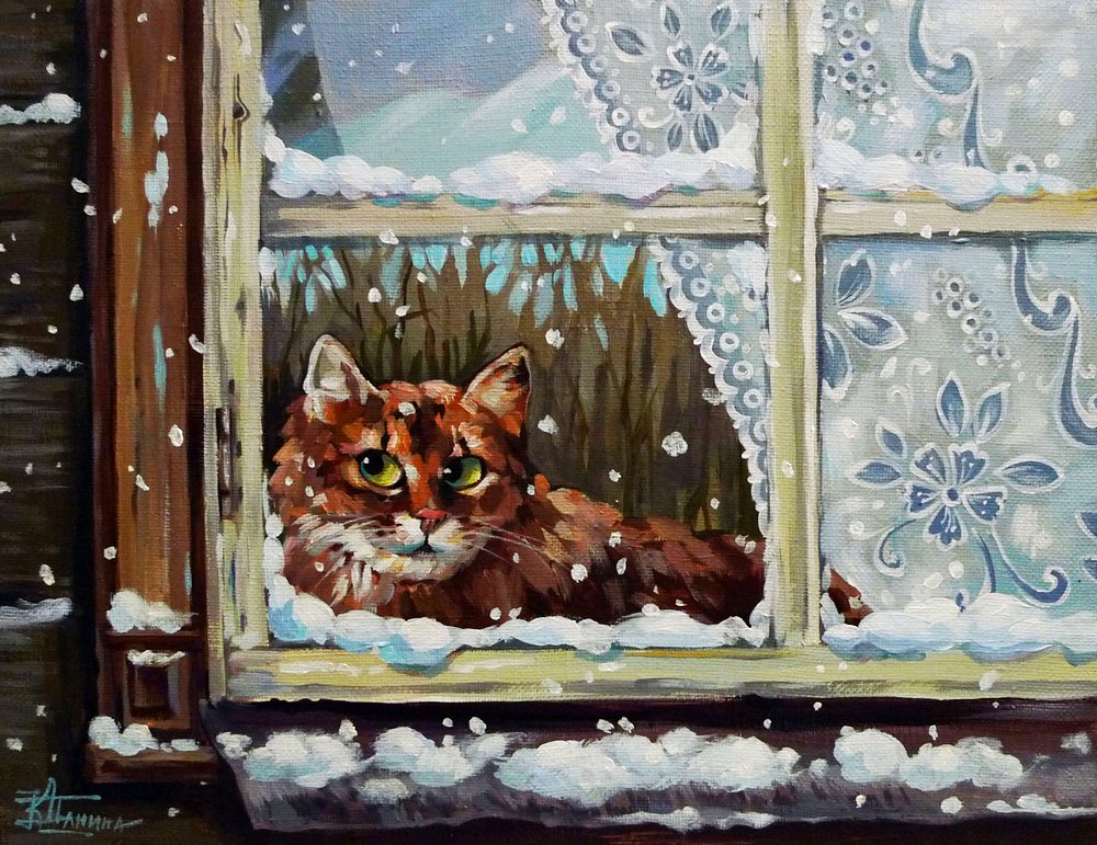 ![Кошка на окошке живопись]()