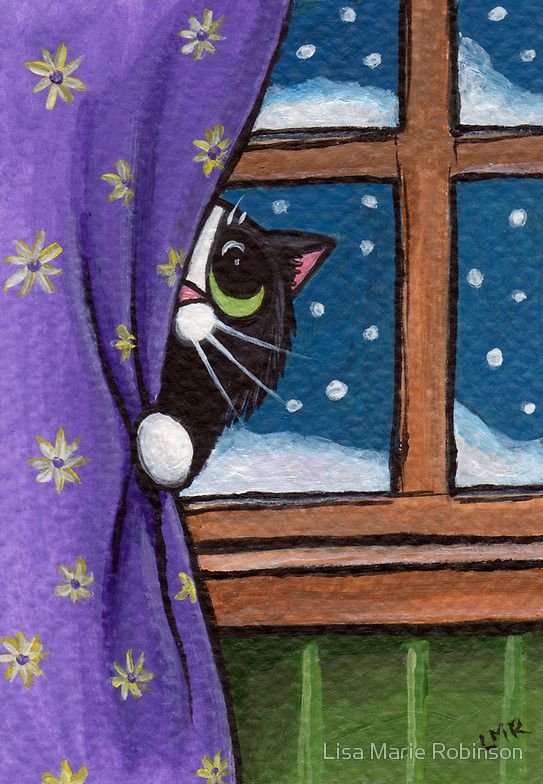 ![Зима кот на окошке]()