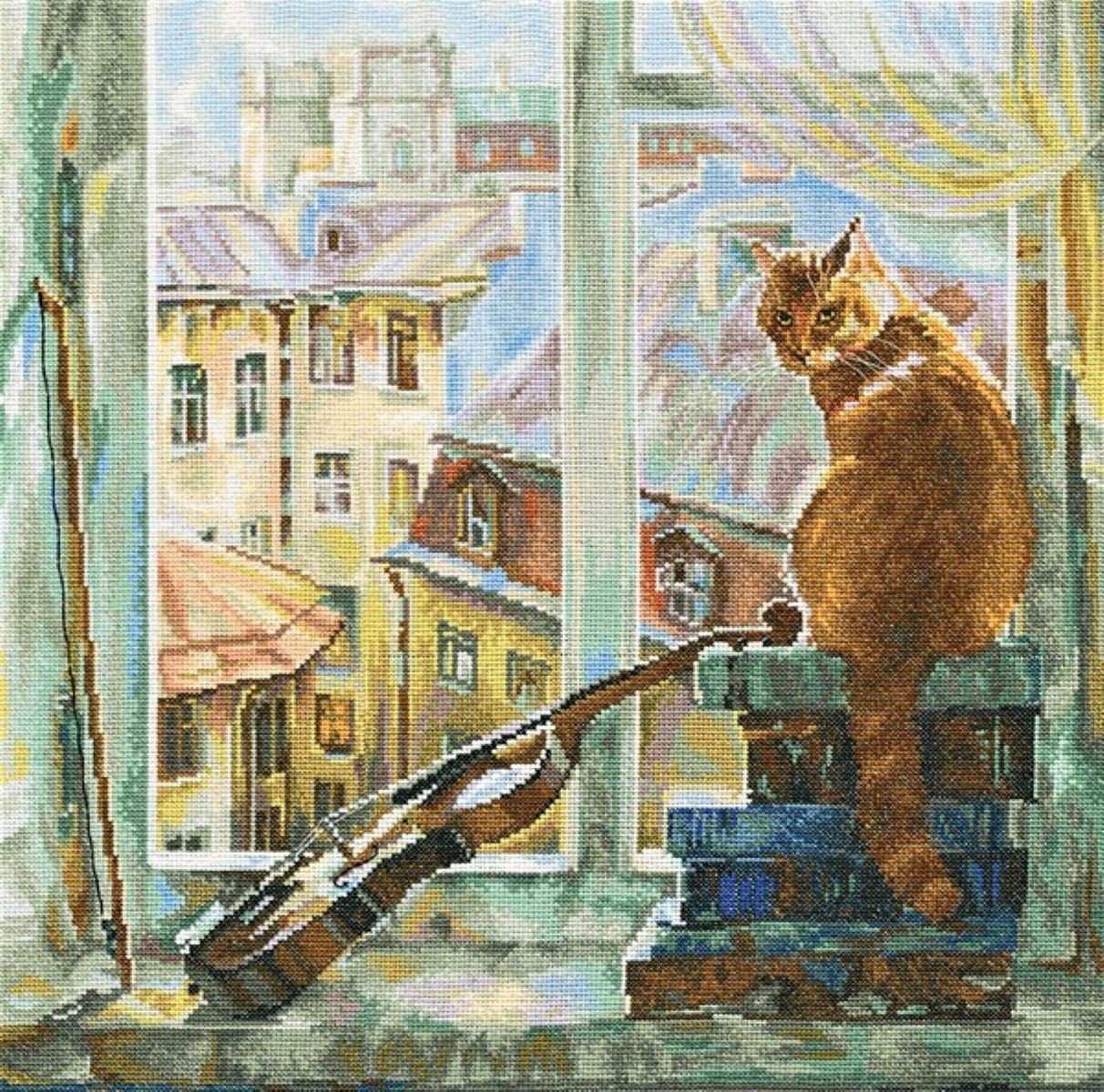 Кошка на окошке живопись