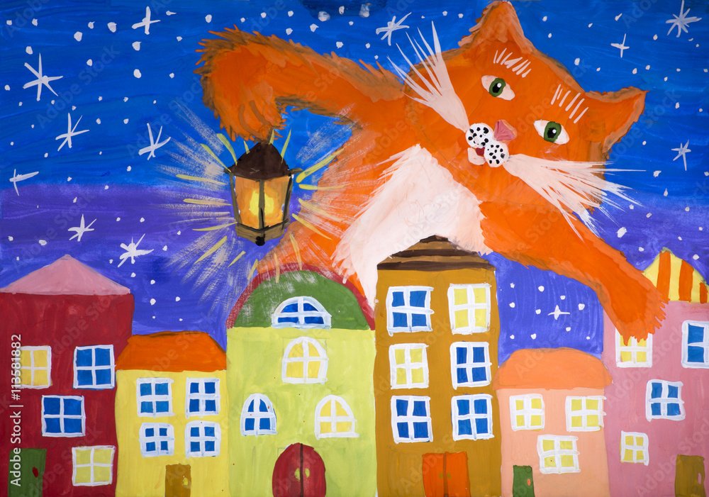 ![Коты на крыше гуашью]()