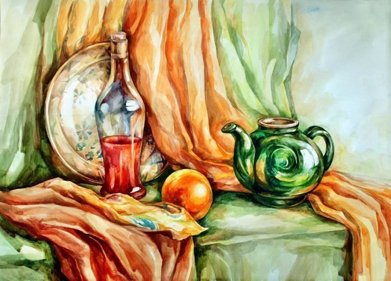 ![Лессировка акварелью натюрморт]()