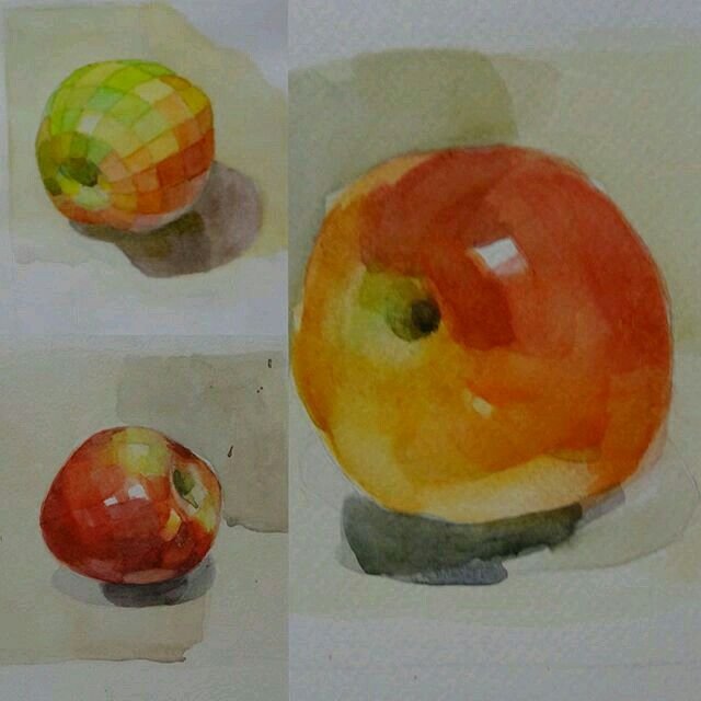 ![Этюд яблока акварелью лессировка]()