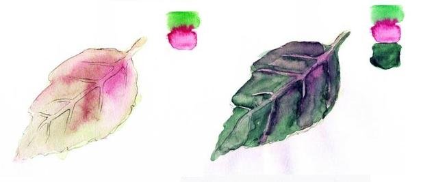 ![Лессировка акварель листья]()