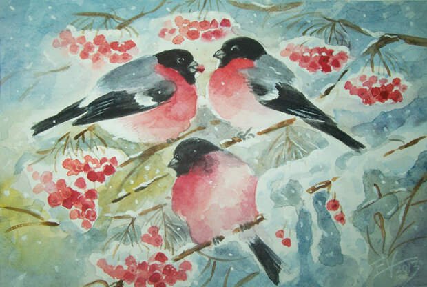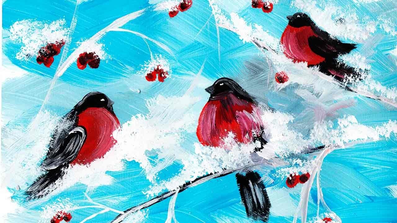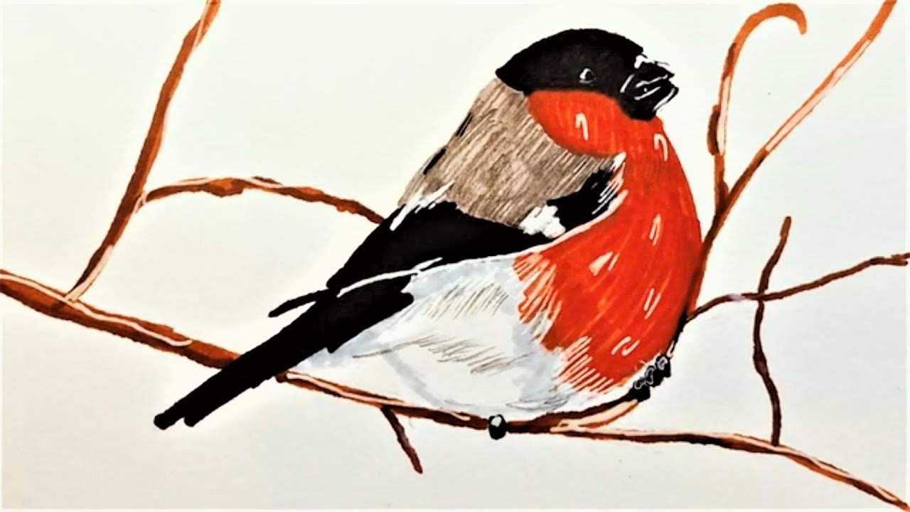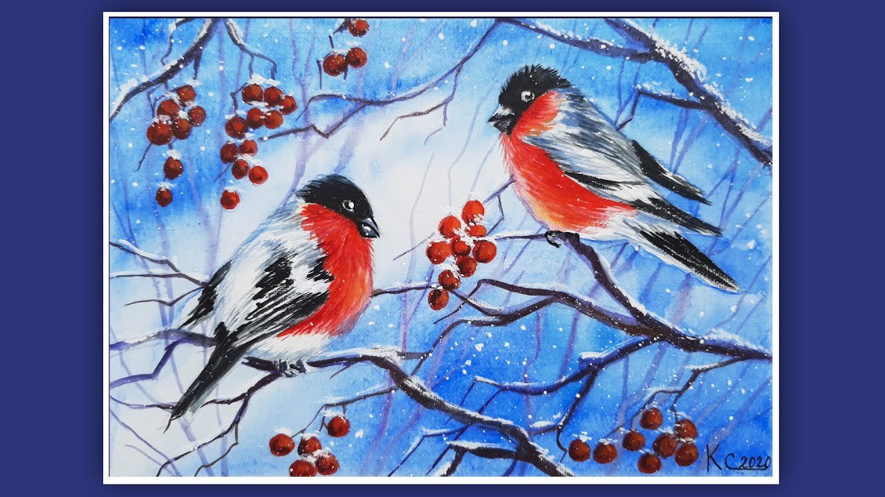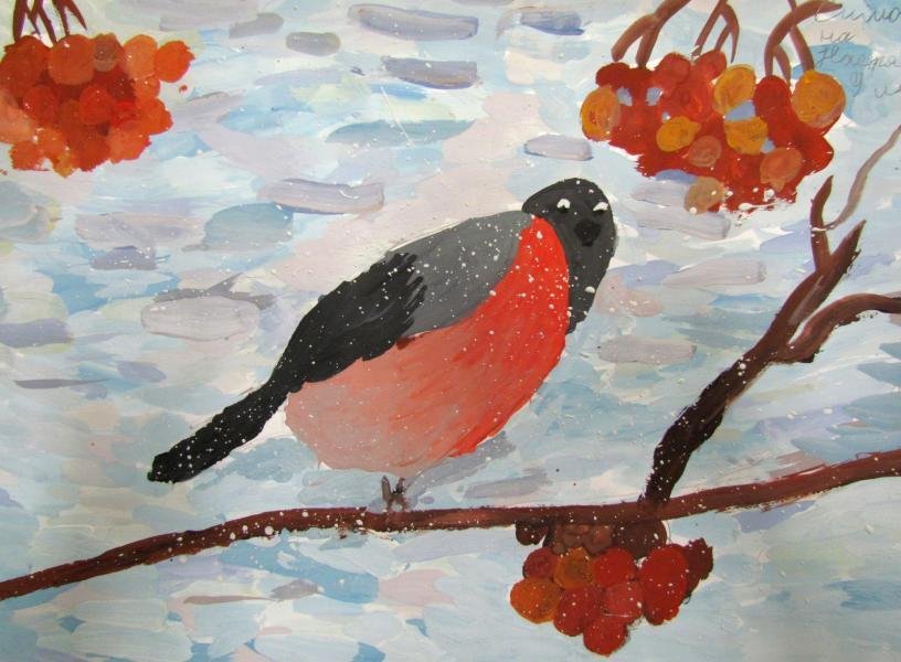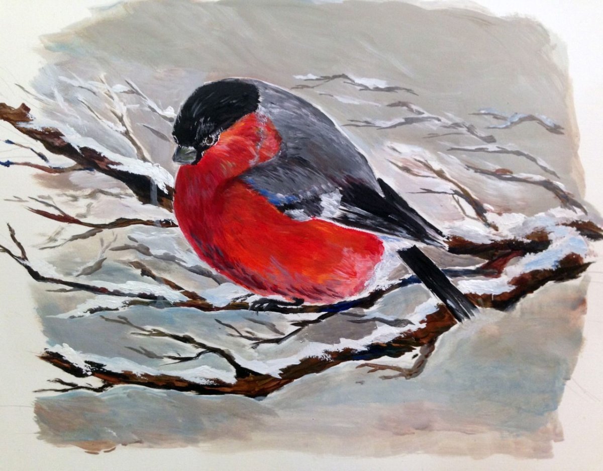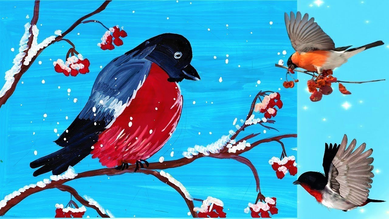 ![Снегирь на ветке гуашью рисунок (50 фото)]()