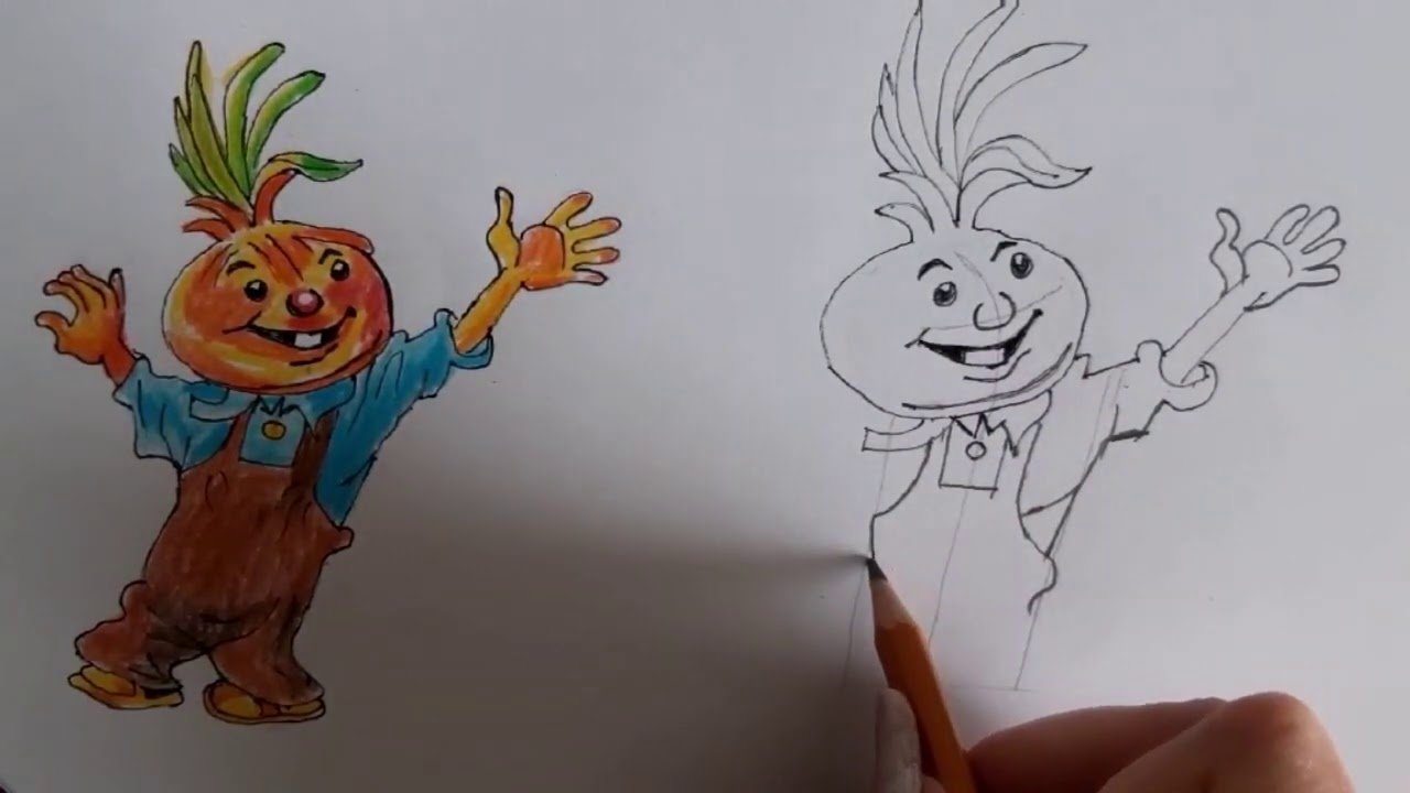 Чиполлино рисунок пошагово