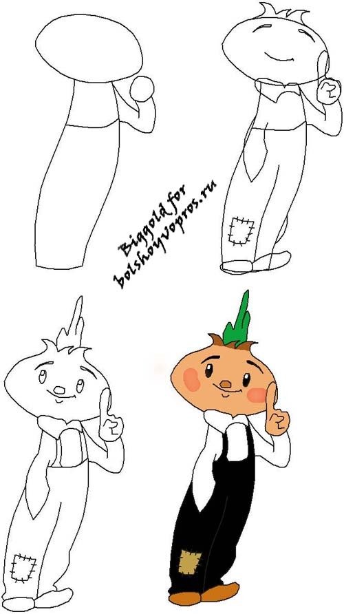 ![Чиполлино рисунок пошагово]()