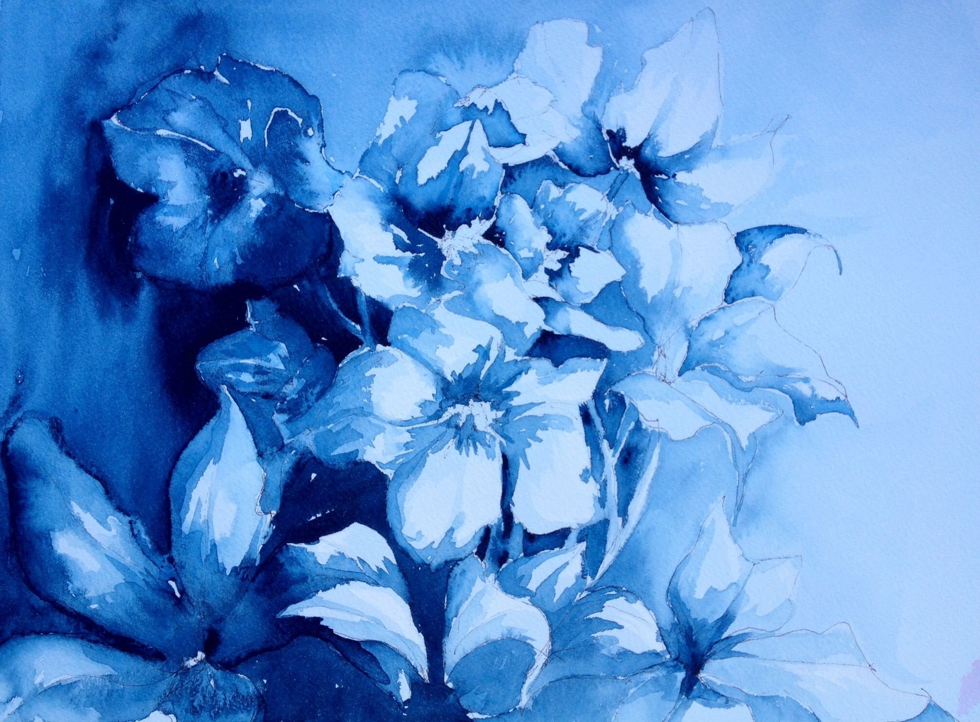 Акварель голубой