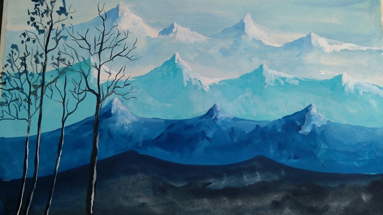 Горы рисунок гуашью
