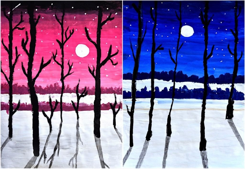 ![Декоративный зимний пейзаж гуашью]()