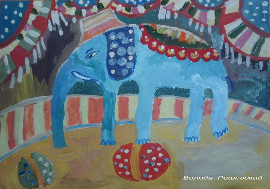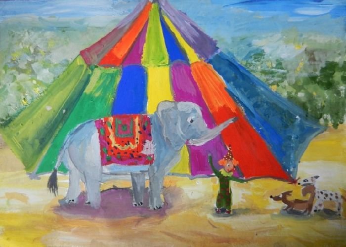 ![Рисование слон в цирке детьми]()