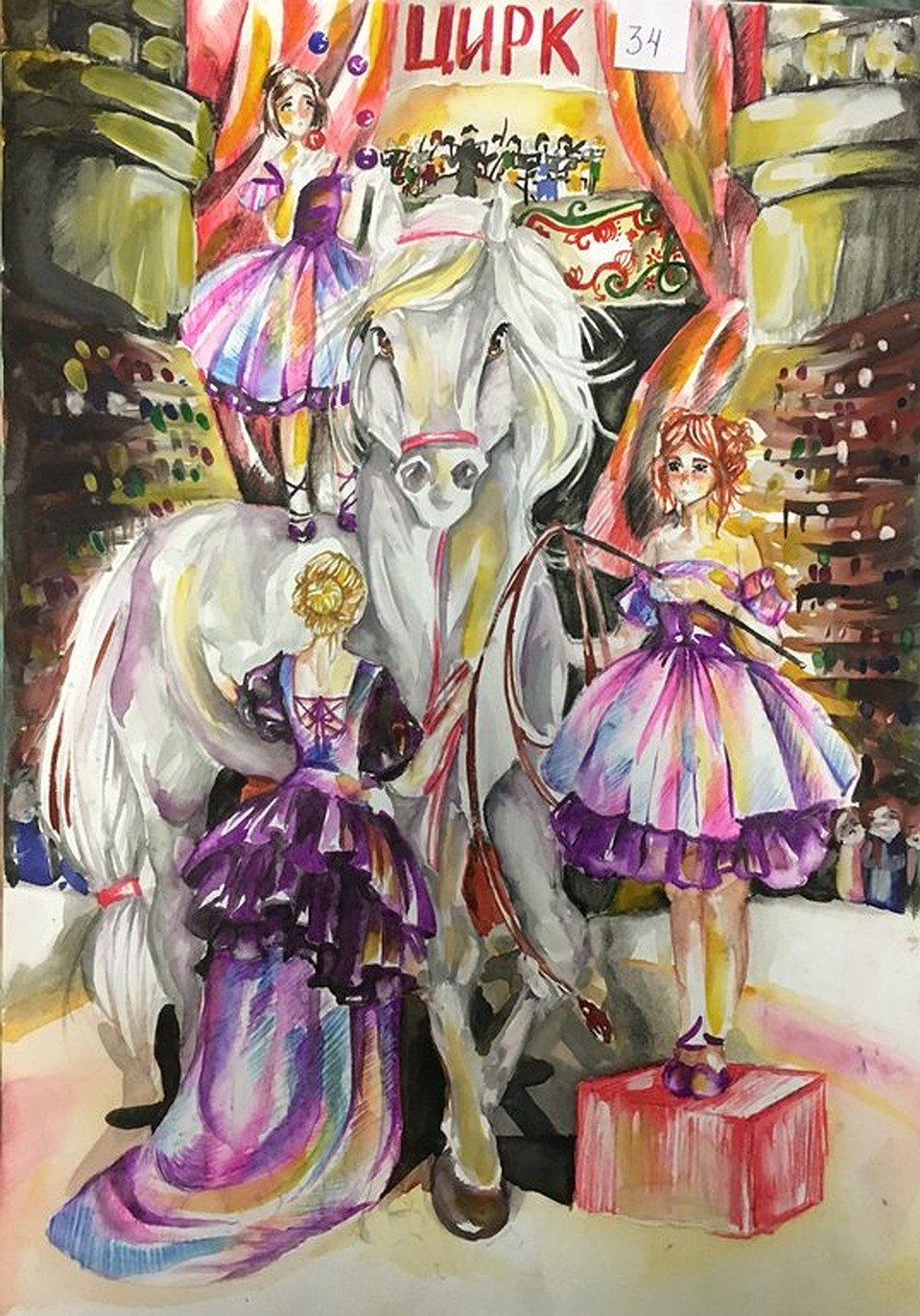 ![Цирковое представление рисунок красками]()