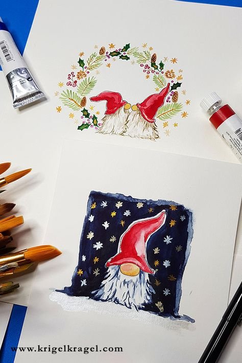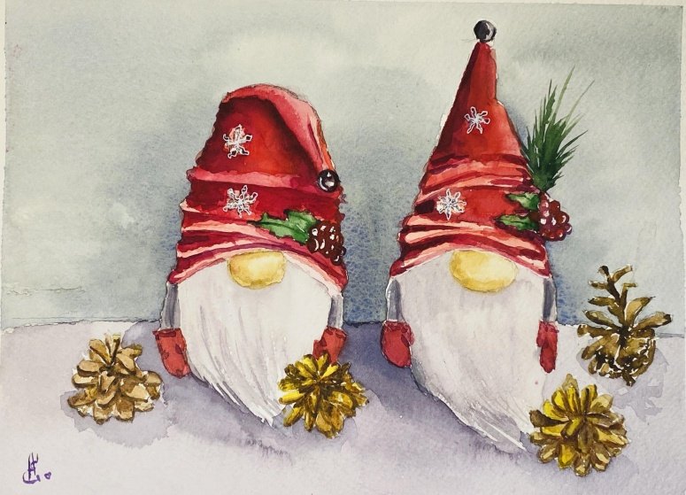 Рождественские Гномы акварель