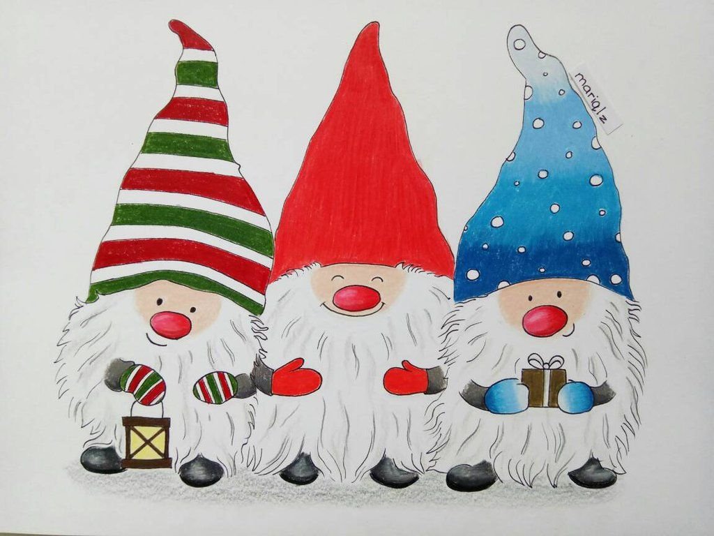 Рисование новогодние гномики