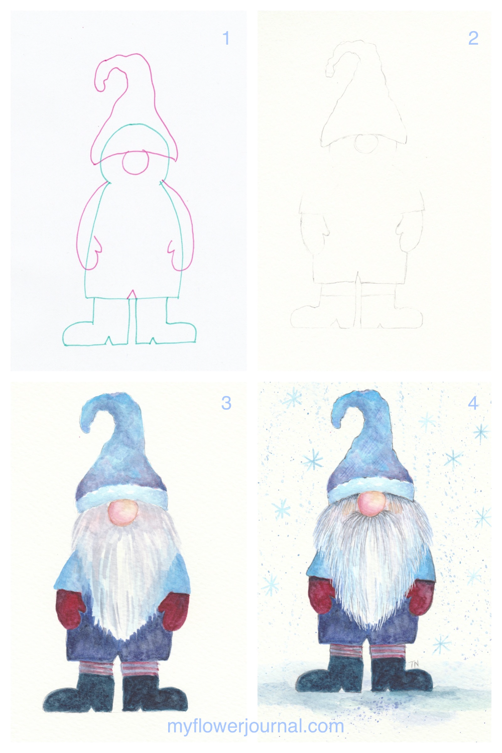 ![Новогодний гномик акварель]()