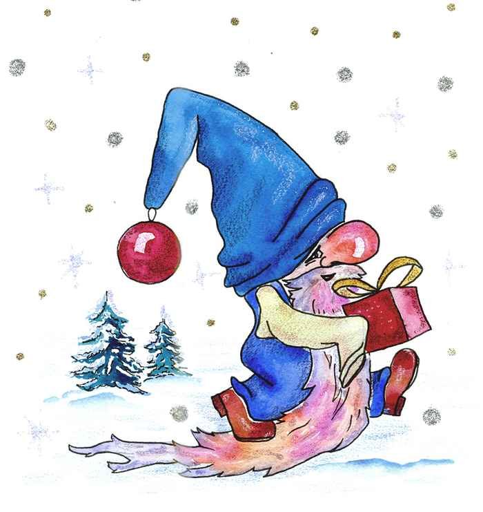 ![Новогодний Гном акварель]()