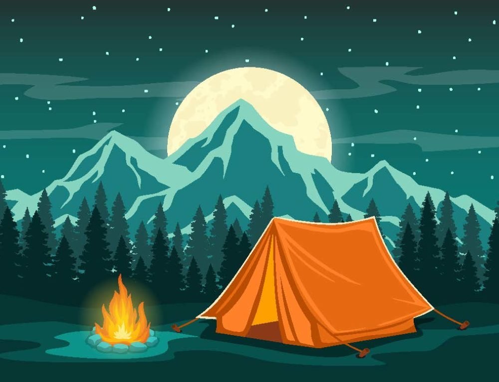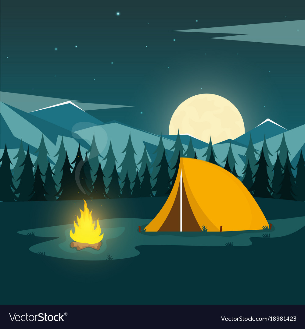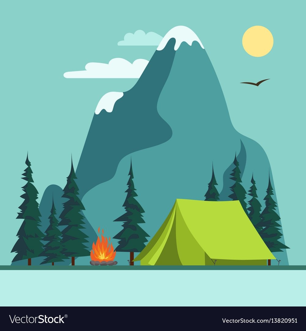 ![Костер палатка туризм иллюстрация]()