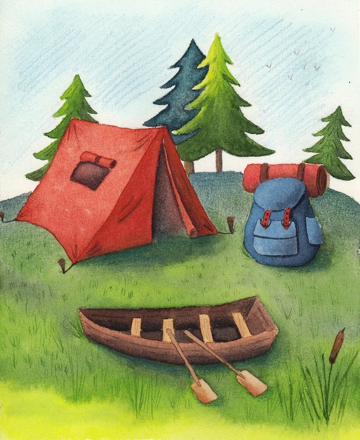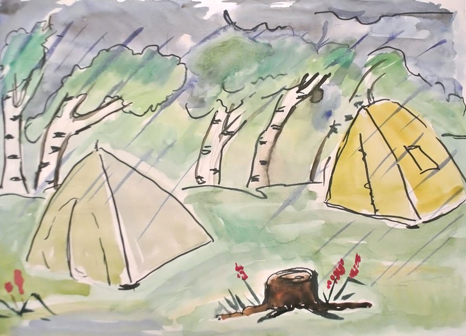 ![Палатка акварельный рисунок]()