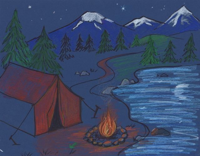 ![Палатка ночью рисунок]()