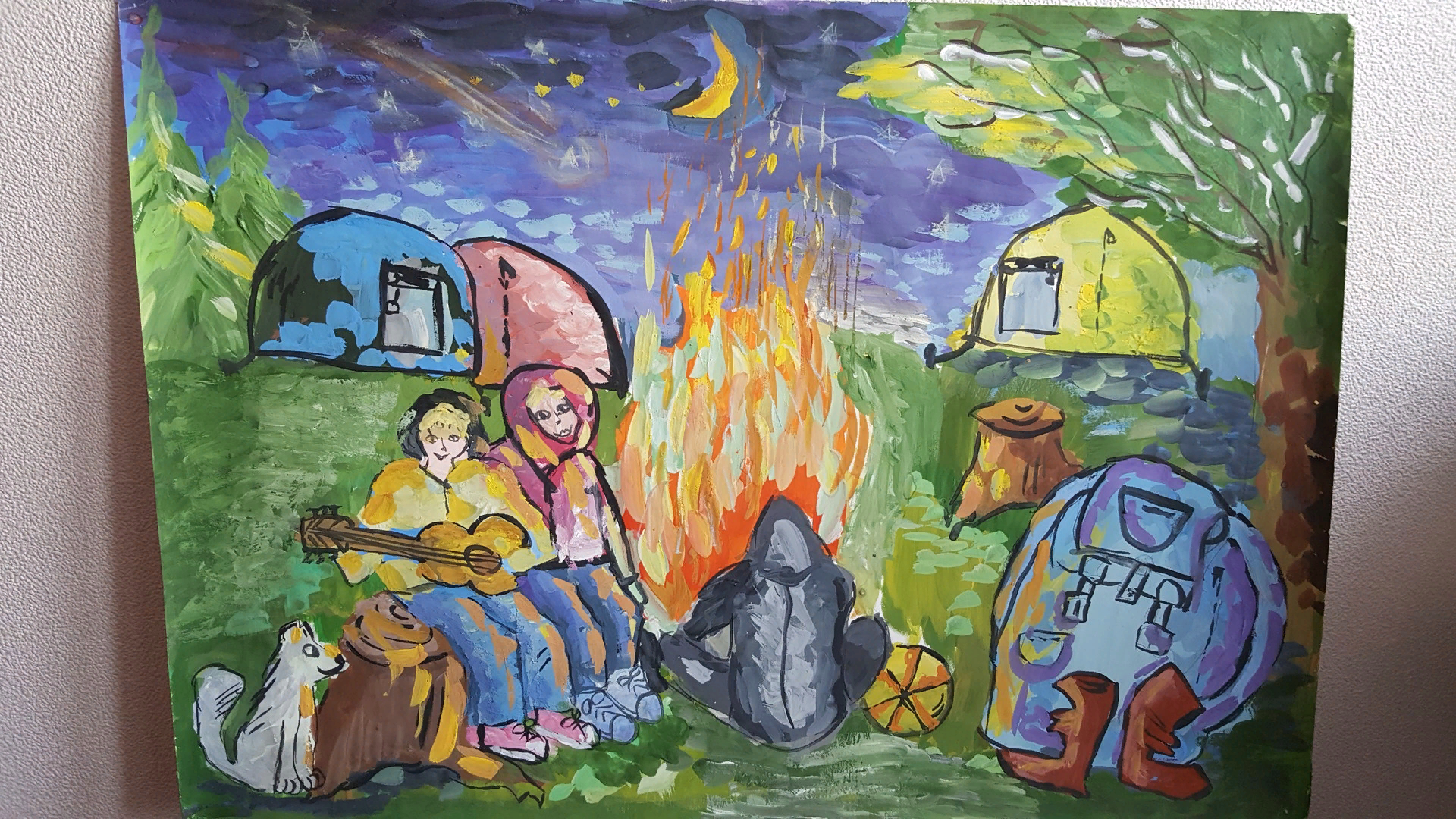 Костер гуашью