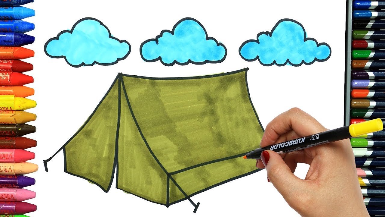 Палатка рисунок для детей поэтапно