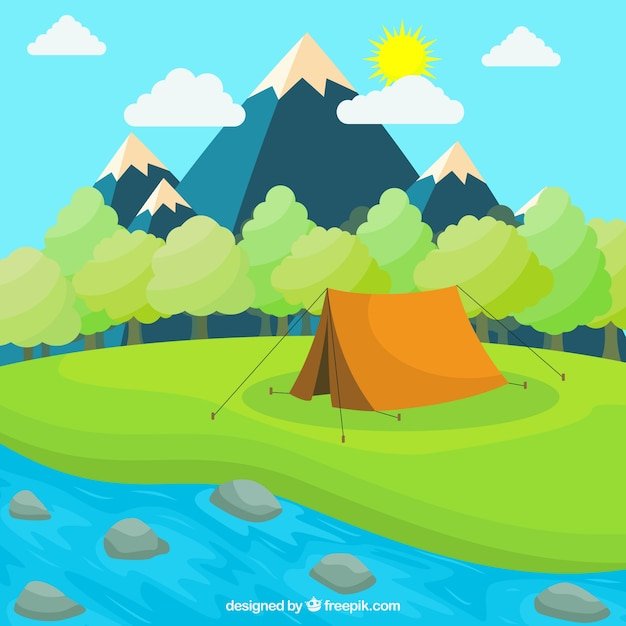 ![Пейзаж с палаткой иллюстрации]()
