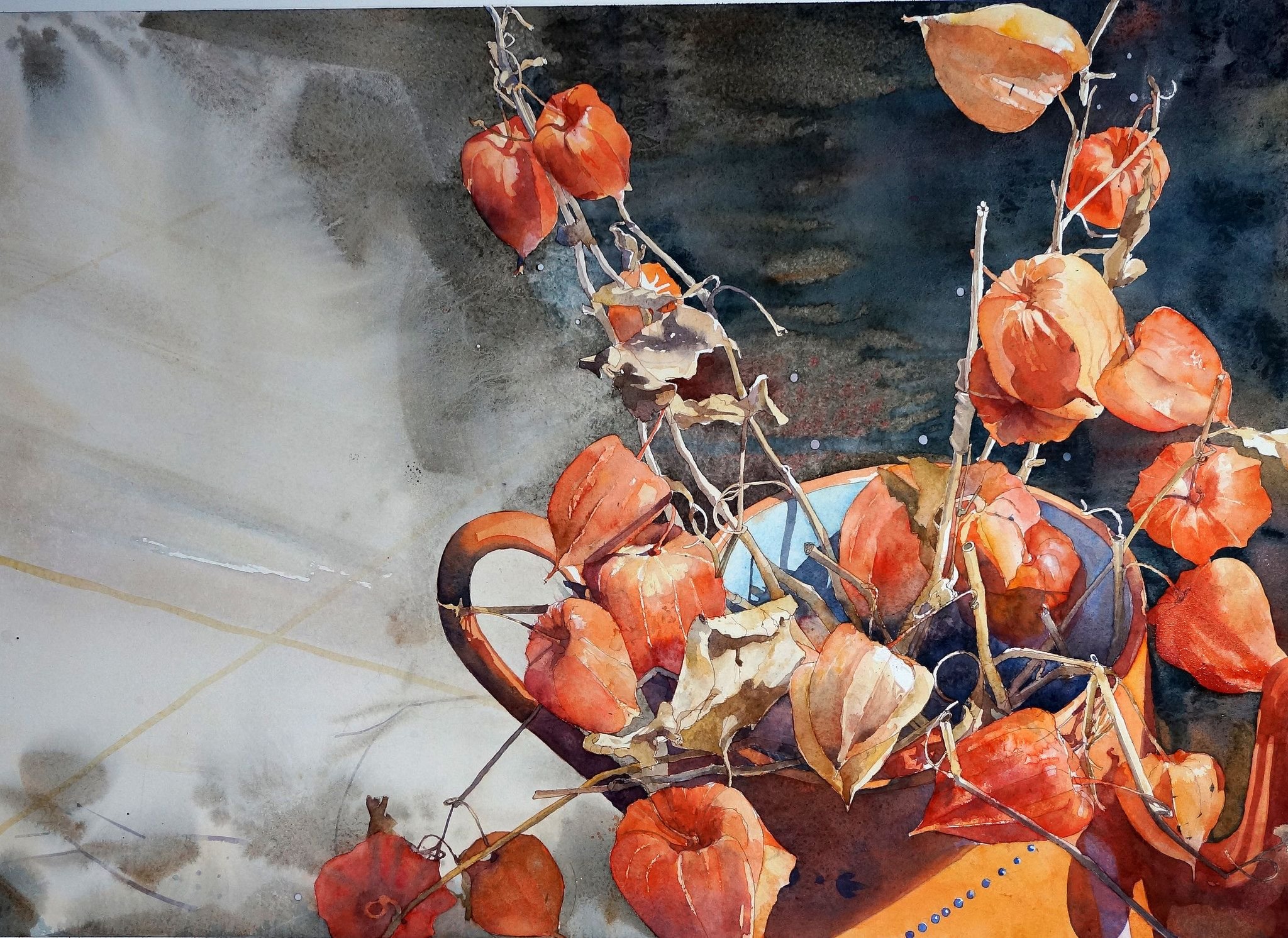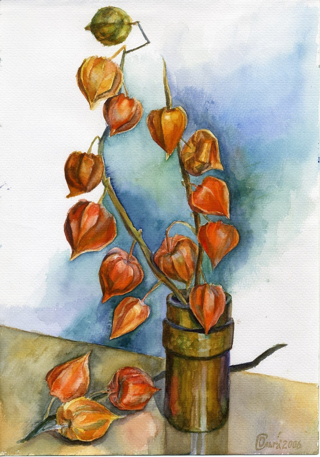 Натюрморт с физалисом акварель